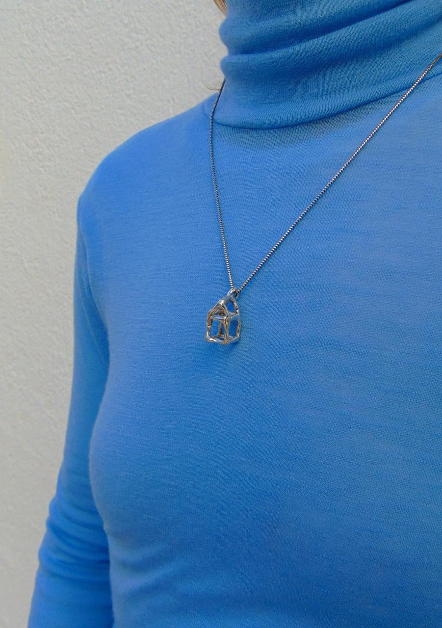 Elaboramos estas piezas en cera y luego las fundimos en plata 925. El resultado son 4 casitas únicas, con rastros de la manufactura, donde se puede ver todo el proceso artesanal